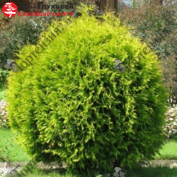 Туя западная Голден Глобе – вечнозеленый низкорослый кустарник сферической формы, высотой до 1,0  метра. Многочисленные побеги равномерно разрастаются в стороны. Форма куста — шарообразная, внутри шара листва яркого зеленого цвета, а по внешним краям — золотисто-желтая. Растет медленно. Предпочитает солнечные места и легкую полутень. Не рекомендованы посадки в местах с сильными ветрами, невлажной почвой и сухим воздухом.Зимостойкость высокая.