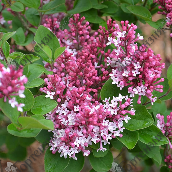 Сирень Мейера Тинкербелл (Syringa meyeril Tinkerbell) - компактный вертикальный куст с раскидистой кроной высотой 1-1,5 м. Цветение начинается в первой половине июня. Цветки мелкие, диаметром 8 мм, в бутонах ярко-вишневого цвета, распустившись, становятся нежно-розовыми, имеют насыщенный аромат. Повторно цветёт в начале осени. Обязательна обрезка сразу после цветения, так как цветочные почки образуются только на летних побегах. Тинкербелл хорошо высаживать не только группами, но и в одиночных посадках. Можно использовать в качестве живой изгороди.