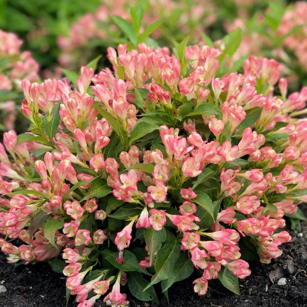Вейгела цветущая "All Summer Peach" (Олл Саммер Пич) -  карликовый сорт,с подушковидной формой кроны, высотой до 40 см и шириной 70 см. Растёт быстро. Цветки воронковидные, кремовые со светлым абрикосовым оттенком. Цветение в мае-июне, затем с середины июля до сентября. Место солнечное или полутенистое. Почва плодородная.Морозостойка.