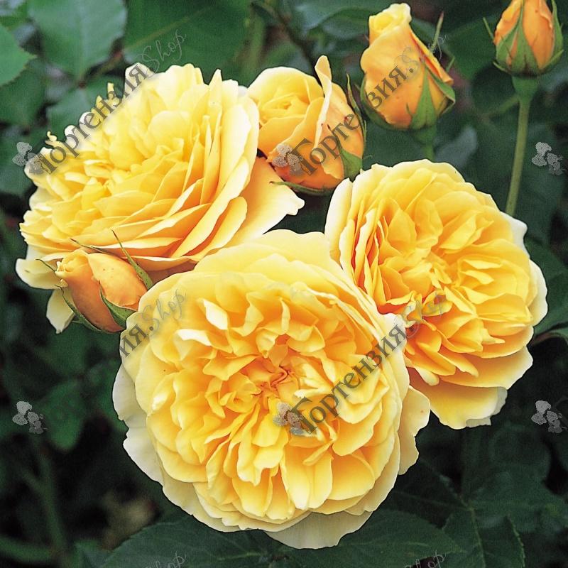 Этот великолепный сорт - одна из самых популярных английских роз, и также одна из самых изменчивых. Бутоны варьируются по цвету от персиковых до красных, раскрываются они в чашевидные махровые 7-10 см цветки, обычно ярко-желтые, в некоторых условиях с персиковыми тонами, с возрастом выгорают до более светлых. Одновременно на кусте можно видеть цветки нескольких оттенков.
