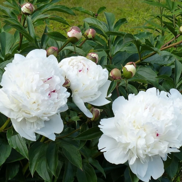 Пион молочноцветковый  Ширли Темпл - осыпанный пышным облаком цветов околдовывает своей красотой и изящностью! Достигает в высоту до70 см. Листья темно-зеленые, крепкие стебли. Цветет с мая до середины июня пышными бутонами нежно-розового оттенка, которые позже становятся чисто-белыми и радуют приятным ароматом. Независимо от цветения, куст сохраняет декоративность до поздней осени. Сорт хорошо зимует и переносит непродолжительную засуху. Побеги устойчивы к заболеваниям.